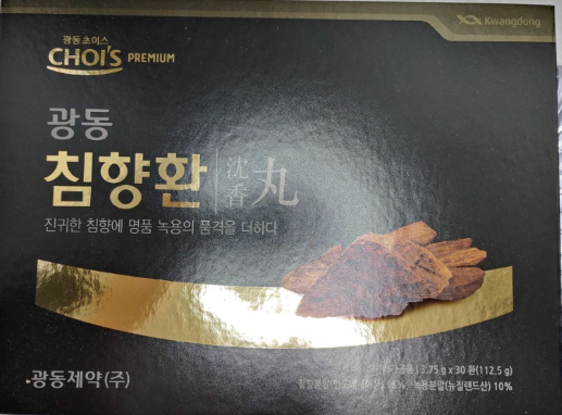 - 광동침향환 효능은 무엇인가요? 기력 회복, 혈액순환 촉진, 신장 건강, 소화 개선, 심신 안정 등에 도움을 줄 수 있습니다.