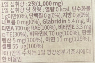- 하루 1회, 1회 2정을 충분한 물과 함께 섭취